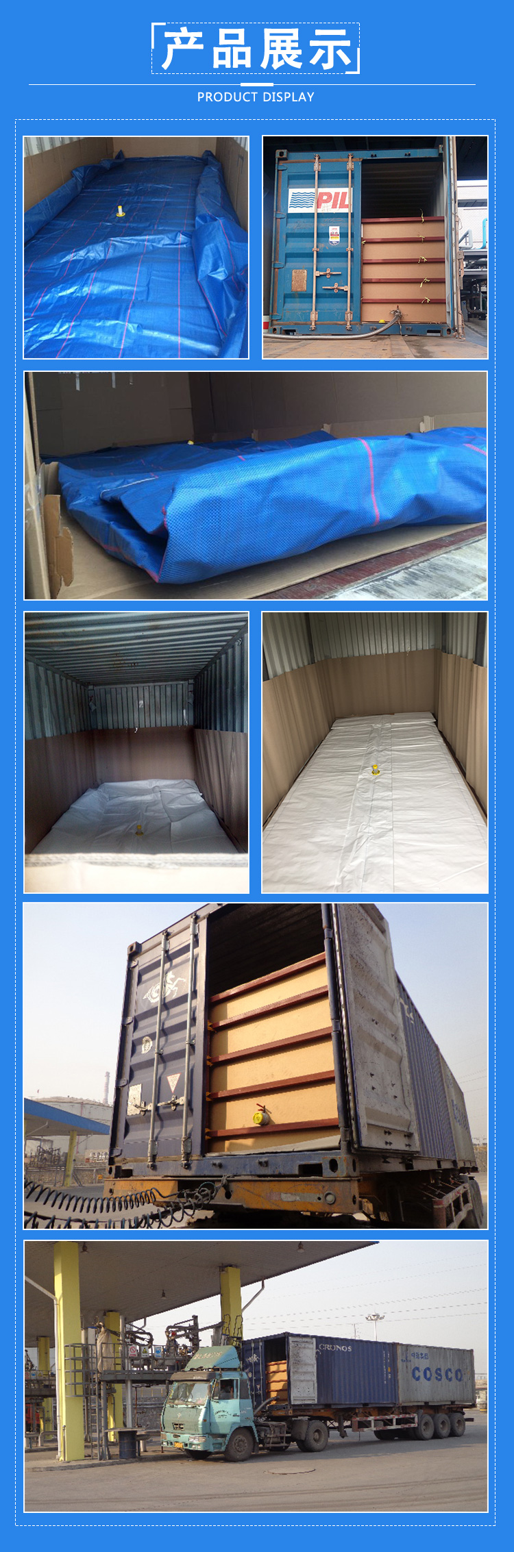 高強(qiáng)度焊縫的聚氨酯液袋,焊縫經(jīng)過雙面貼條加強(qiáng),焊縫強(qiáng)度高于材料本身強(qiáng)度1.3倍,長4.3米寬2.3米高1.5米,適合用于13米半掛車,裝載煤焦油、棉籽油、花生油、減水 劑、助磨劑、造紙助劑等液體貨物的長途運(yùn)輸,無需專業(yè)的罐車、槽車,空載配貨,節(jié)約運(yùn)費(fèi)一半以上,顛覆了傳統(tǒng)的運(yùn)輸方式,引發(fā)非危險(xiǎn)液體貨物長途運(yùn)輸?shù)囊粓龈锩?